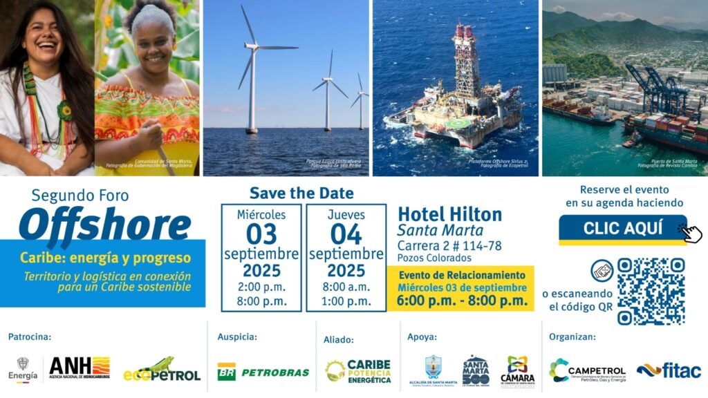 Con una destacada participación de autoridades, empresarios y expertos del sector, se desarrolló el Segundo Foro Offshore: Caribe, Energía y Progreso, convocado por CAMPETROL y FITAC, con el apoyo de la Alcaldía de Santa Marta, la Agencia Nacional de Hidrocarburos (ANH), Ecopetrol, Petrobras, la Cámara de Comercio de Santa Marta para el Magdalena y la iniciativa Caribe Potencia Energética.